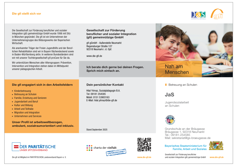 Weitere Informationen finden Sie hier: https://www.die-gfi.de/regensburg/arbeitsfelder/betreuung-an-schulen/jugendsozialarbeit/